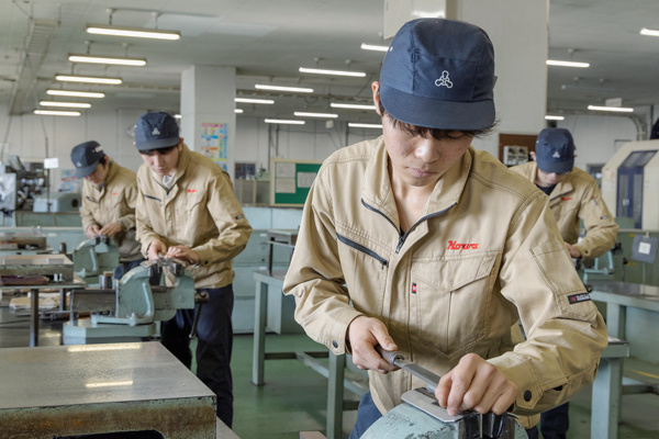 豊和工業における「基幹技能職」は、「認定職業訓練」制度に基づく職業訓練生として、1年間それぞれの専攻科ごとに将来必要となる高度技術・技能の習得に努めており、豊和工業のものづくりを支える人材として成長できるよう励んでいます。