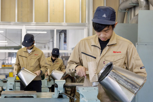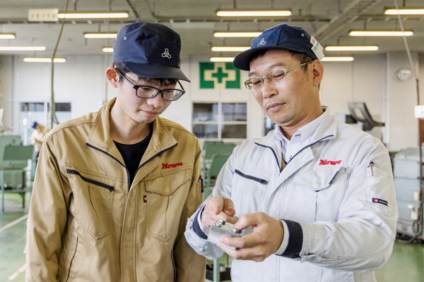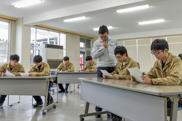 法律で決められている内容を事業主や団体などが県から認定を受けて行うもので、1年間の訓練修了時に行う技能照査の試験に合格すると「技能士補」の称号が与えられます。この資格を取得することで、技能検定の学科試験免除や必要経験年数の短縮などの優遇措置を受けることができます。豊和工業では、このような人材育成の取り組みを1959(昭和34)年より行っており、これまで数多くの基幹技能士、監督者を育成することで、より良い製品づくりに反映させています。